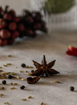 A blend of the warm and comforting flavours of cinnamon, cardamom, fennel, black peppercorn, star anise and cloves.